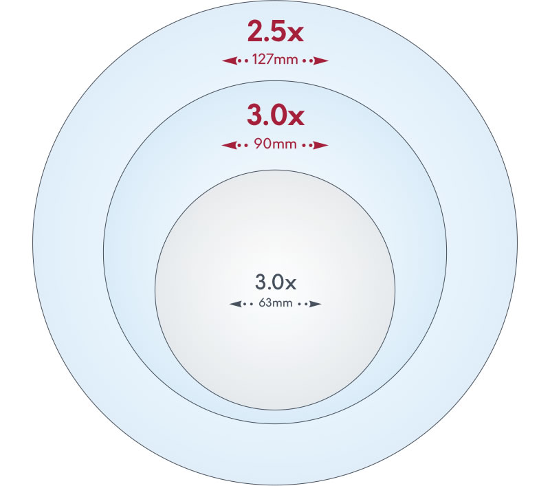 The Essential 2.5x or 3.0x magnification offers a great price point for hygienists seeking a quality loupe with a full-arch width-of-field. Not only will your Synca specialist ensure that you work in the optimal position for your musculoskeletal health, but the 3.0x loupe offers higher magnification for more accurate diagnostics and full arch views. Obtain almost 50% more visual acuity with the 3.0x Essential loupe over 2.5x magnification.