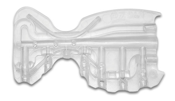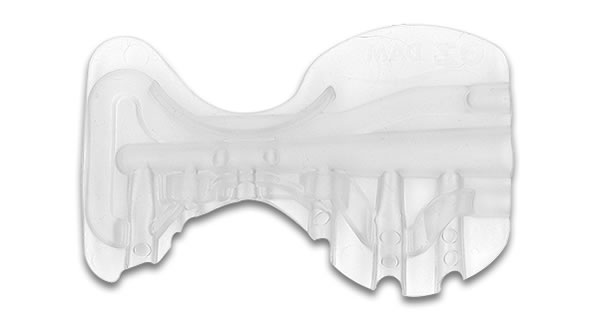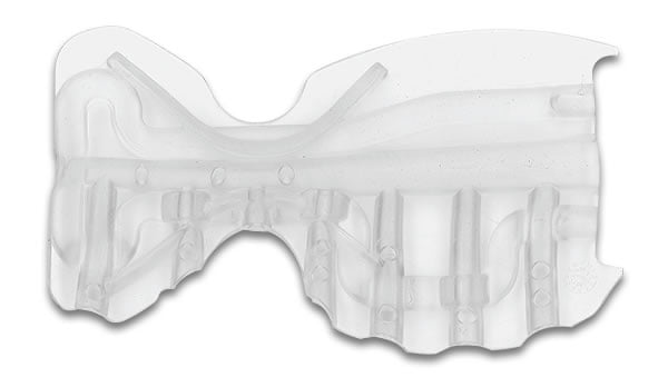 The “Retract” mouthpiece is also made from Dynaflex, but is more rigid and provides better retraction. It is also trimmable and is only available in the “Adult” size. The Retract mouthpiece is recommended for patients who are tongue thrusters and or patients that have thicker cheeks.