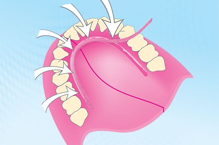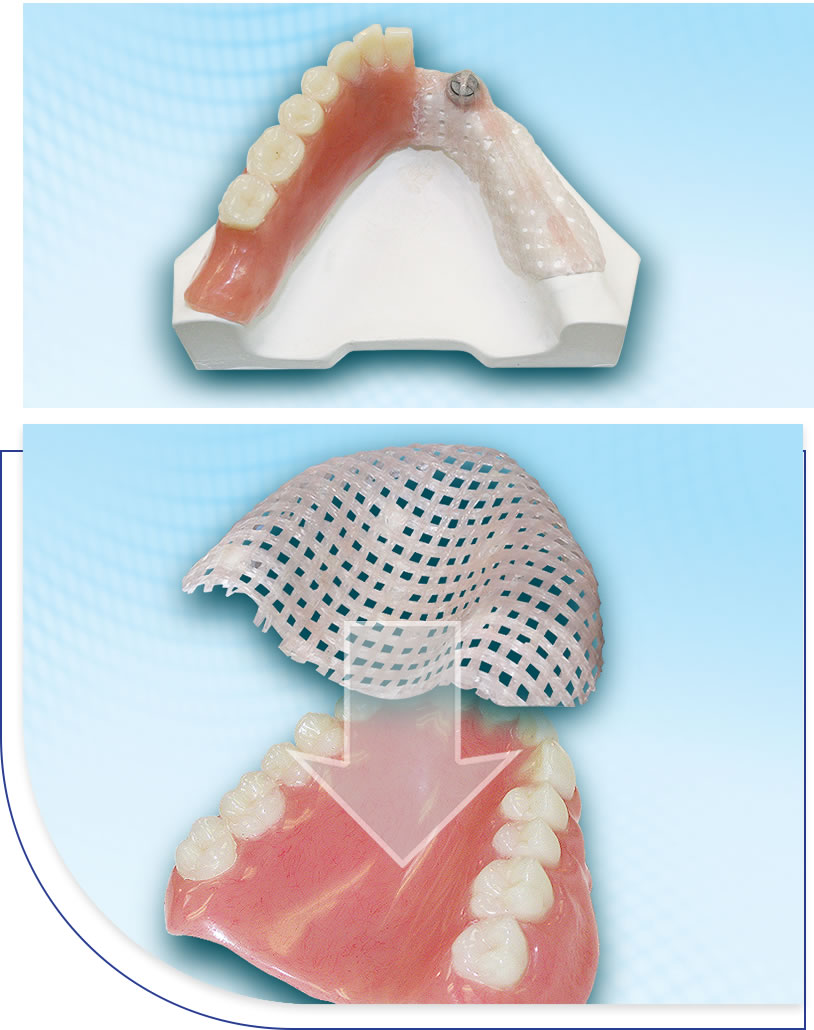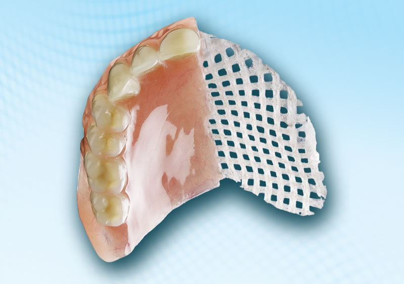 | Dentures with soft liners are more comfortable for denture wearers but not prescribed because the thin hard base makes them more prone to breakage. FiBER FORCE® mesh reinforcements significantly strengthen the hard acrylic base and make a denture with a soft liner an accessible reality.