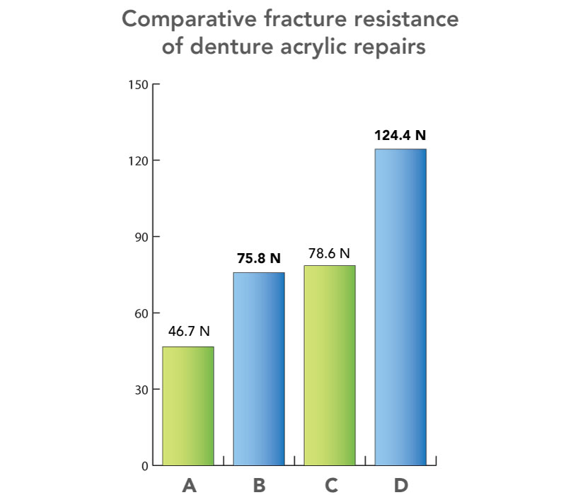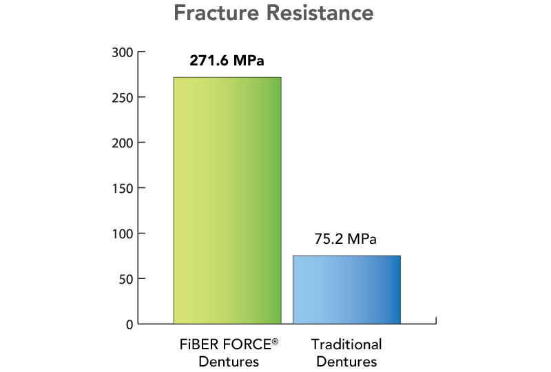 | One study has confirmed that dentures repaired with fiber reinforcements are 58% stronger than the original dentures and 166% stronger than dentures repaired with acrylic alone.