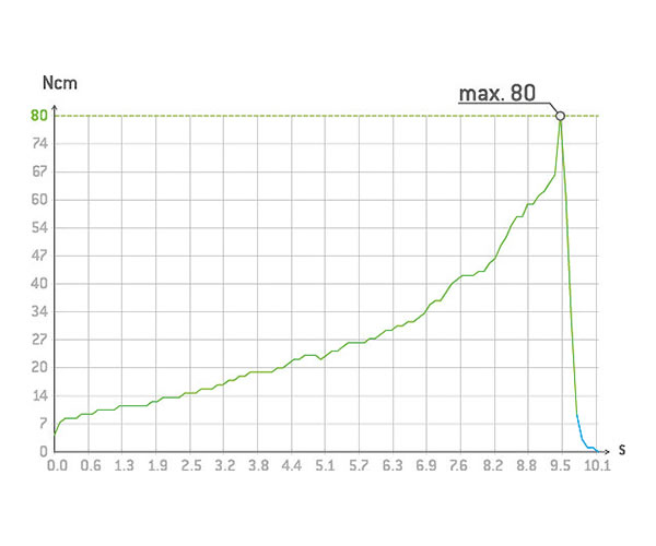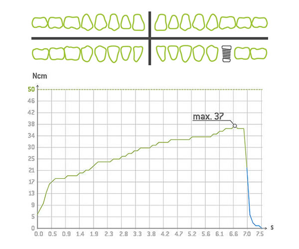 Thread cutter functionUse the automatic thread cutter function to insert implants in hard bone. The thread cutter function prevents excessive compression of the bone when inserting the implant. The result: no bone loss and stress-free healing of the implant. | Automatic torque controlThe torque can be precisely adjusted from 5 to 80 Ncm and ensures the necessary safety when inserting implants. Controlled insertion of all types of implant with torque of up to 80 Ncm. | Documentation of proceduresActivate the documentation function and document treatments and their results. That offers you extra security, ensures quality and reinforces your patient’s confidence. Saves all values of the implant insertion, thread cut and/or Osstell ISQ measurement on a USB stick and inform referrers about the healing process. |