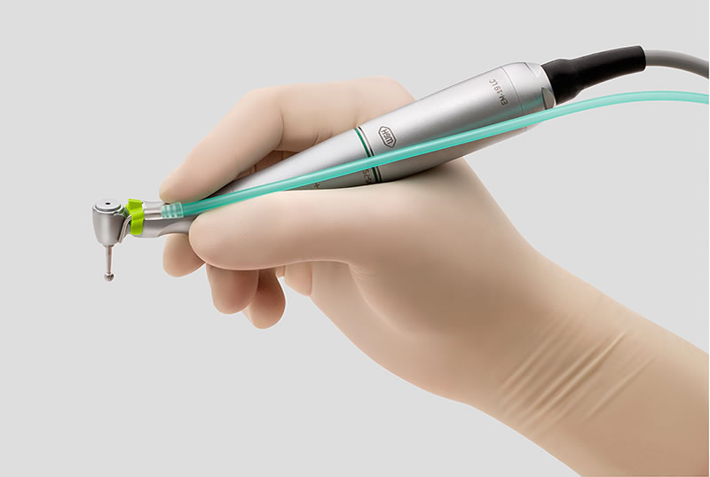 Perfect cleaningTo enable thorough cleaning to be carried out, the contra-angle handpieces can be easily and quickly dismantled and re-assembled – without the use of tools. | Optimal illumination (option)Thanks to its being half the size of a normal LED, the mini LED+ can be integrated very close to the contra-angle head and offers optimal illumination. | Scratch-resistant surfaceThe unique coating protects the contra-angle handpiece from scratches. This facilitates cleaning and preserves the value. |