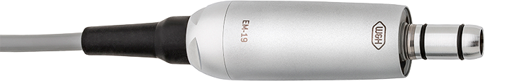 The contra-angle handpiece is comfortable in the hand and in combination with the ultra-short EM-19 or EM-19 LC motor perfectly balanced
