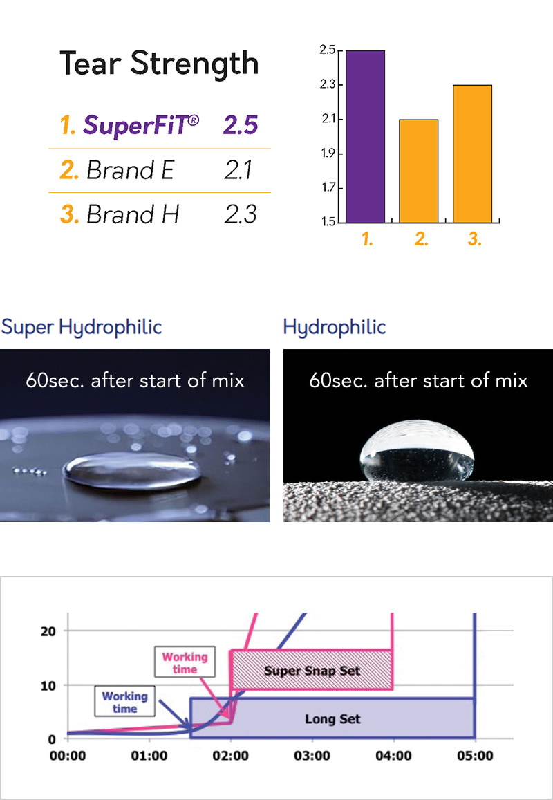 The advanced SuperFiT!® formula minimizes setting times while allowing for a full 1:00 to 1:30 of working time.