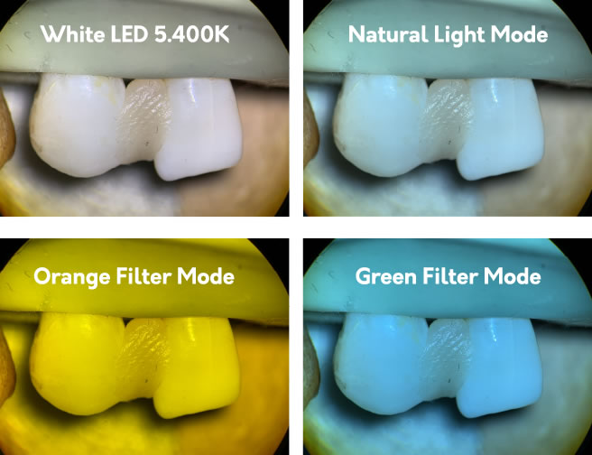 The White Light is the standard setting with a homogeneous field of view and 5.400 K colour temperature.