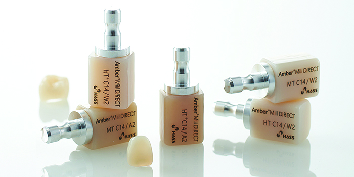 Amber® Mill Direct is a pre-crystallized lithium disilicate block designed for chairside CAD/CAM restorations, enabling single-visit indirect restorations without a crystallization step. Its functionally graded microstructure (GLD Technology) provides a natural gradation of translucency and strength between the cervical and incisal/occlusal regions, reducing antagonist tooth wear while ensuring excellent marginal fit and high flexural strength (up to 355 MPa after glazing). The material can be simply milled and polished, OR milled and stained/glazed.