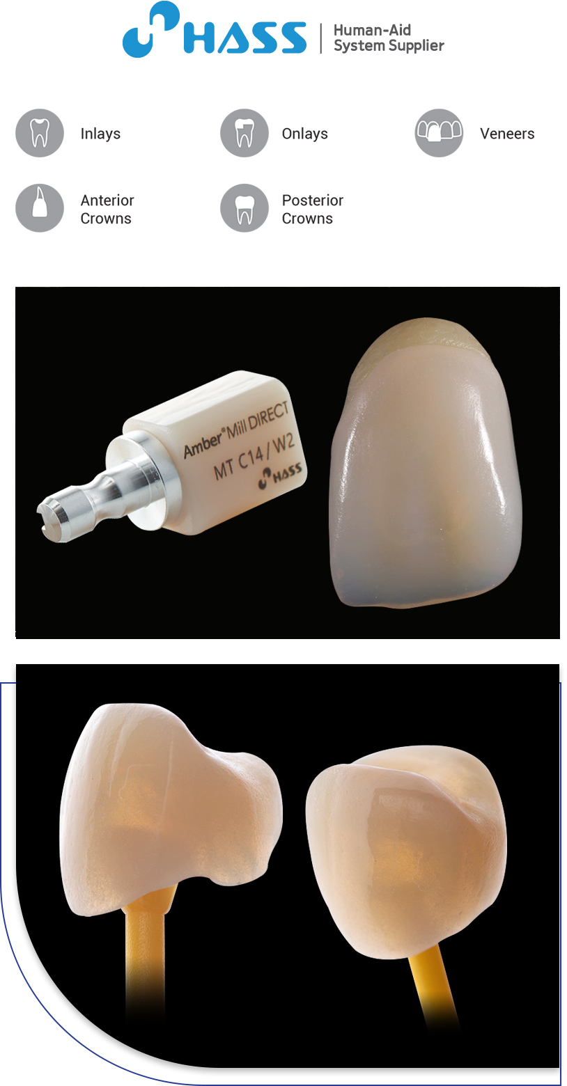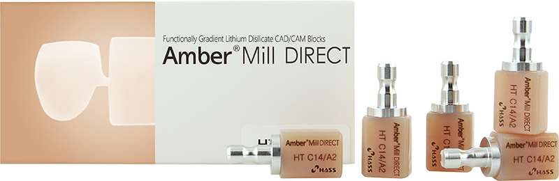 Amber® Mill Direct est un disilicate de lithium pré-cristallisé qui ne nécessite aucune cuisson supplémentaire au four. Il suffit de fraiser, polir et poser. Économisez un temps considérable — pour chaque restauration.