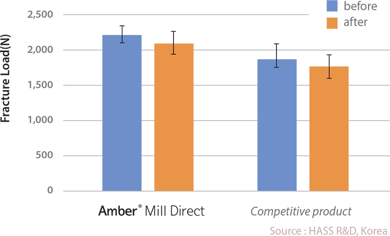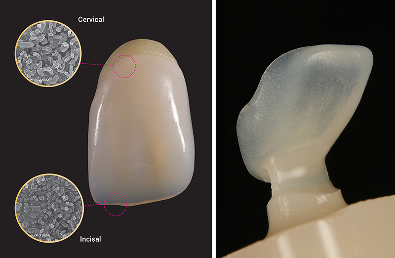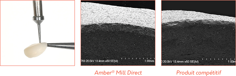 Amber® Mill Direct obtient une translucidité naturelle grâce à une microstructure graduée, de la région cervicale jusqu’aux zones incisales/occlusales, sans nécessiter de caractérisation supplémentaire.