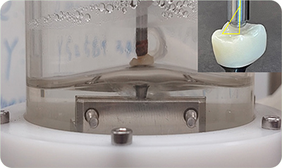 1 000 000 cycles / 1,5 Hz / force de 10 kg (dans une eau à pH 7,2) et cyclage thermique entre 5 et 55 °C, 30 secondes pour chaque phase. | Les résultats du test effectué avec le simulateur de mastication démontrent une résistance à l’usure supérieure dans la région occlusale. |