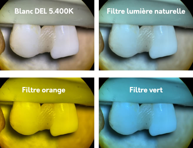 Le système de filtre sélectif des microscopes Flexion Twin rend la dentisterie encore plus efficace et précise en vous offrant 4 filtres additionnels.