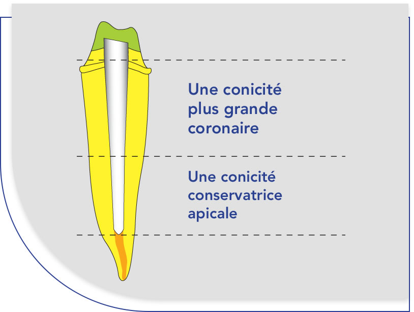 Les tenons fibrés s’apparentent le plus à la dentine humaineLes tenons fibrés s’apparentent le plus à la dentine humaine que n’importe quel métal. Par conséquent, ils éliminent pratiquement tout risque de fracture radiculaire.
